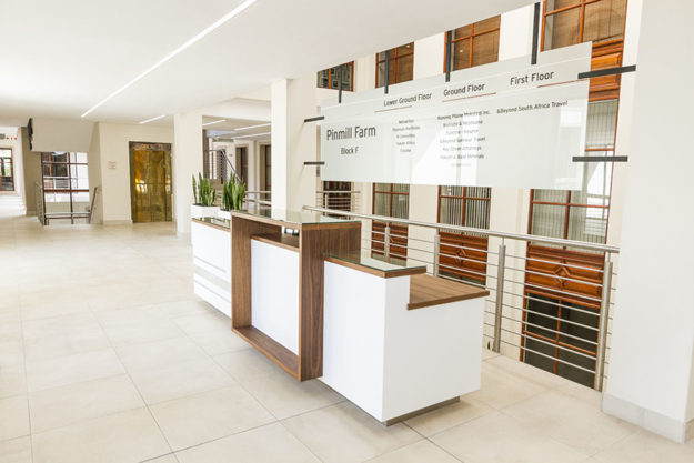 Sandton, JohannesburgCommercial Interiors Interior design & Project Management (Client used existing furniture) Client: Pinmill Farm Block F Category: Commercial Interiors