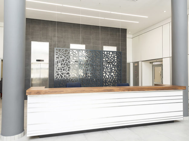 Midrand, JohannesburgInterior design, Project management and Turnkey fitout. Client: Sanofi Lobby Category: Commercial Interiors